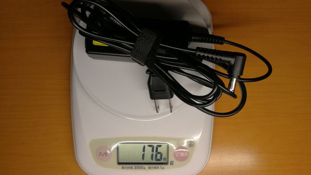 充電器の重さは176gとこちらも軽量、本体と合わせても941gと1kgを切る軽さです。