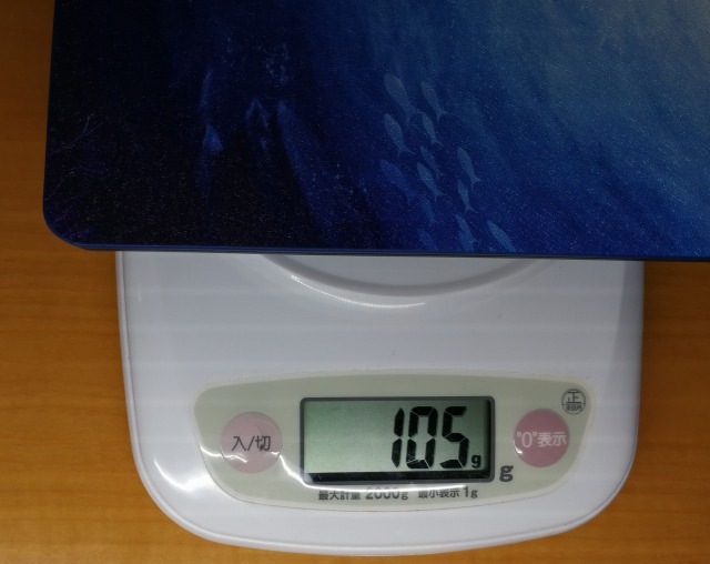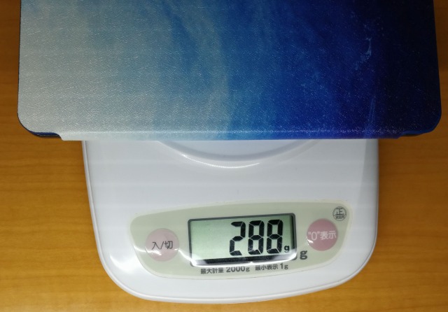 ケース単体の重さは105g、本体にカバーを付けた際の重さは288gでした。