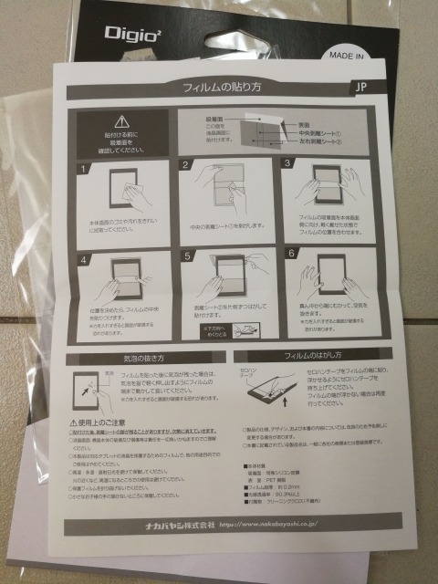 同梱物はフィルム、クリーニング用の不織布、取説となっています。