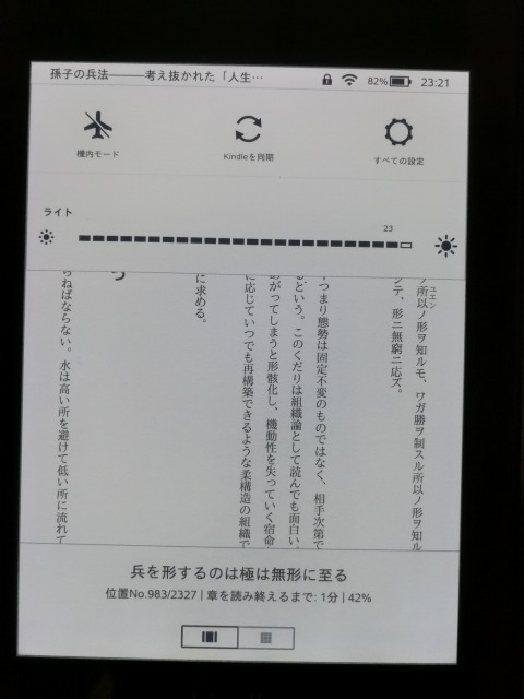 ところがkindleにすると紙の本のように外が明るければ明るいほど見やすい。