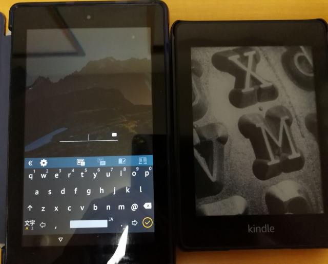 Fire7と並べて撮影してみました大きさの違いが分かりますか?