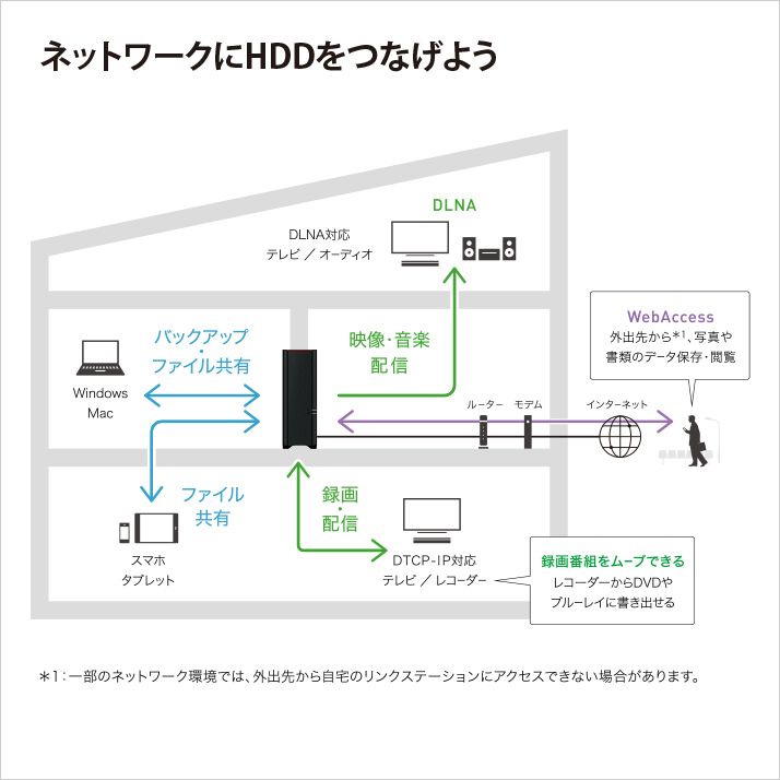 1ドライブのLinkStation同様に録画した番組の保存や共有が可能です。