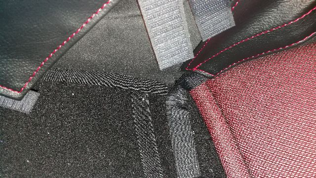 オブションとしてステッチカラーを赤にし、シートベルトガイドを追加しました。