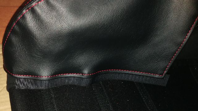 腰の部分はこのように眺めのマジックテープが付いており、ショルダー部分のプロテクターを下に引いています。