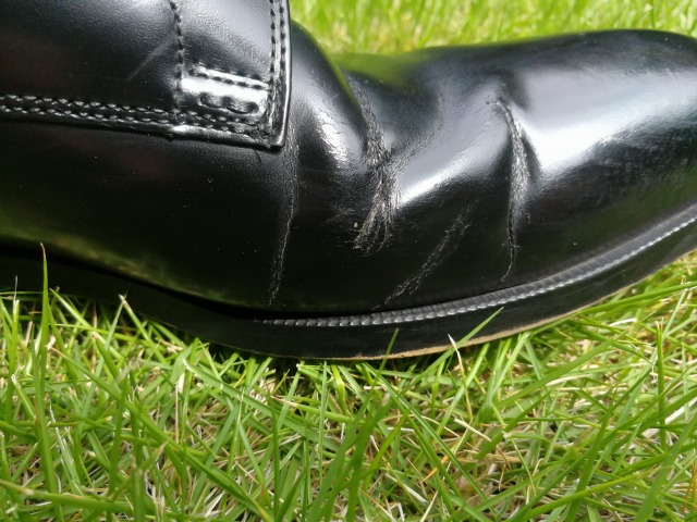 経年変化を楽しむ靴にはなりませんね。このあたりが革靴好きにガラスレザーが毛嫌いされる要因でもあります。