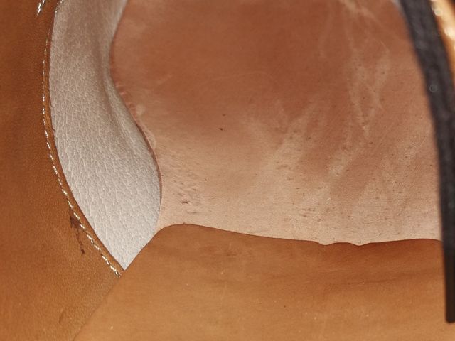 ライニング(内張)は革。写真では白いので布に見えてしまうかも知れませんが、革特有の皺があります。