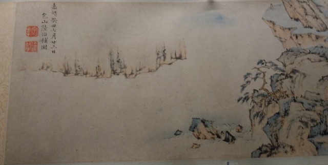 明時代の著名な文人・文微明(ぶんちょうめい)が書した「後赤壁賦」に陸治が図を補ったという作品。