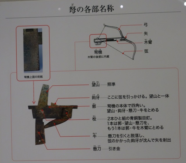 なかでも、柄に弓を取り付け引き金をひいて矢を発射する弩(ど)は殺傷力が強く、戦いで重要な役割を果たした。