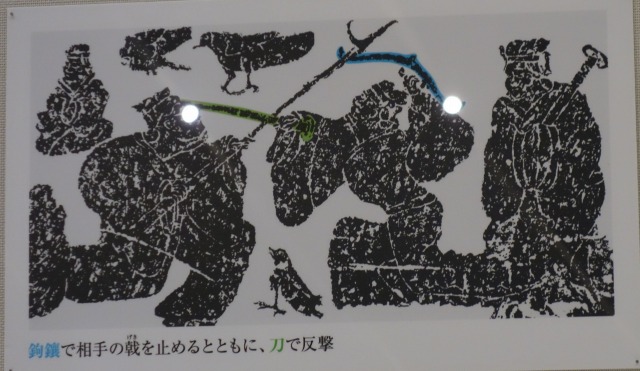 刺突に加え、横に飛び出た部位で相手を挟んだり、引き倒す使い方もあった。