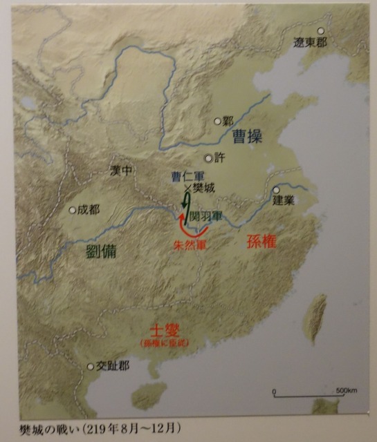 荊州(湖北省)に留まっていた関羽は。曹操軍の拠点である樊城に猛攻を加え、献帝が住む許をうかがう形成を作り出した。