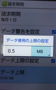 ①モバイルデータ通信の使用量設定を500KBに制限します。