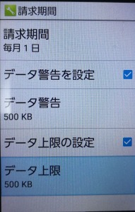 3)データ上限の設定を500KBにします。