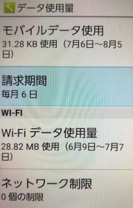 データ上限→データ使用の上限の設定
