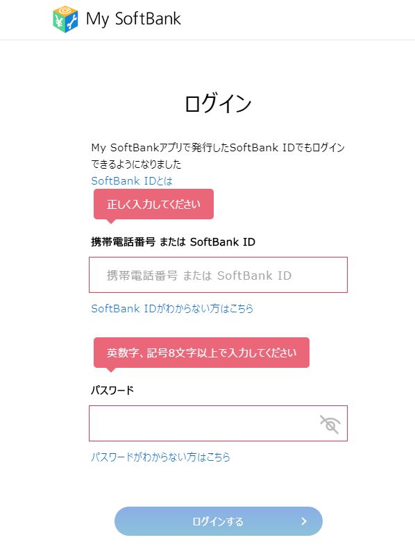 ソフトバンクの利用状況の確認や各種契約の更新などを行うためにもMy SoftBankを利用出来るようにします。