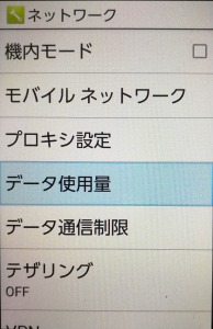 設定→ネットワーク→データ使用量→ネットワーク制限→定額制