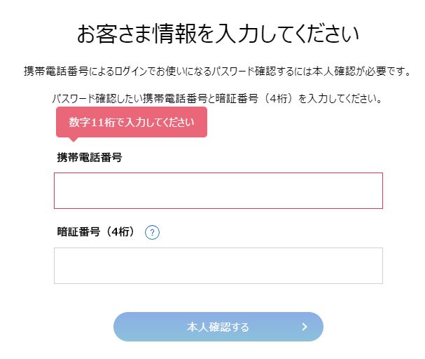 ②次に携帯電話番号でのログインのパスワードを確認するを選択します
