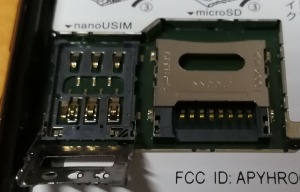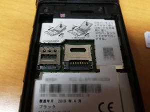次に携帯のsimのホルダーにsimカードを挿します。写真の左側がsimアダプタです。