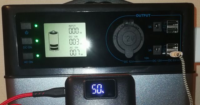 まずはモバイルバッテリへの充電をAC出力から行いました。