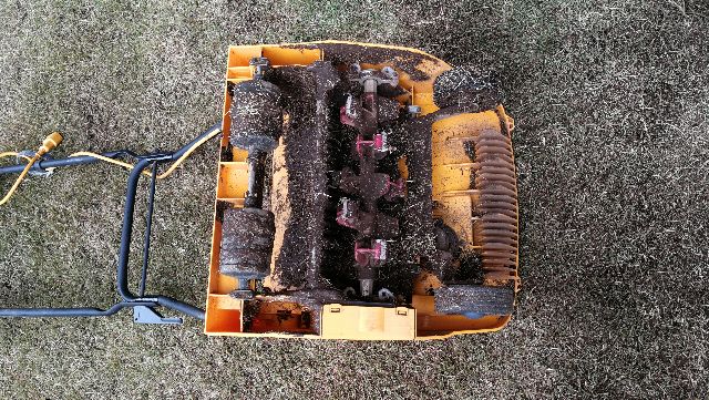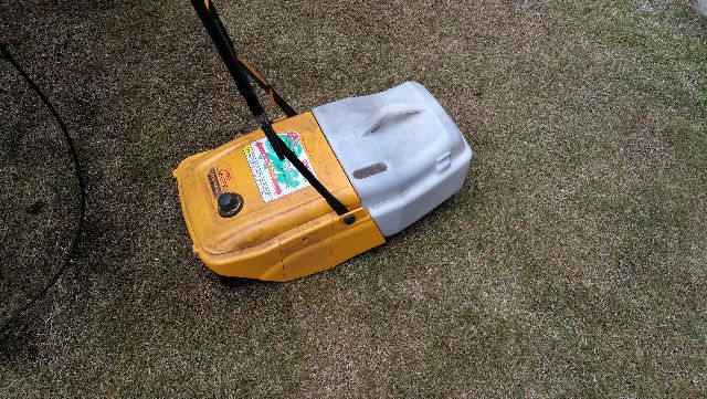 リョービのリール式芝刈り機はサッチング刃オプションに入れ替える事でサッチングマシンに様変わりします。